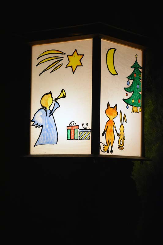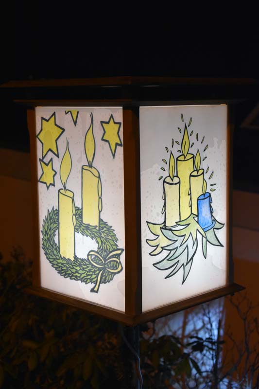 Die 55 Laternen leuchten verstreut im ganzen Quartier, von der Rebbergstrasse unten bis oben in der Rosmattstrasse/Sonnenbergstrasse. Versehen sind sie mit verschiedenen, individuell gestalteten Motiven. Sie leuchten ab dem ersten Advent bis am 6. Januar.